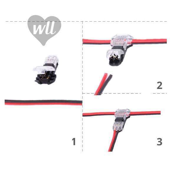 No need to strip the wires and no soldering with this innovative lock flap style connector.